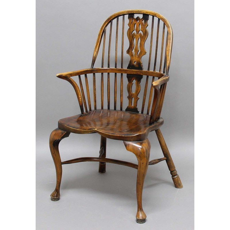 THAMES VALLEY STYLE WINDSOR CHAIR, 20th century, with pierced splat, solid elm seat, cabriole front legs and crinoline stretcher, height 107cm