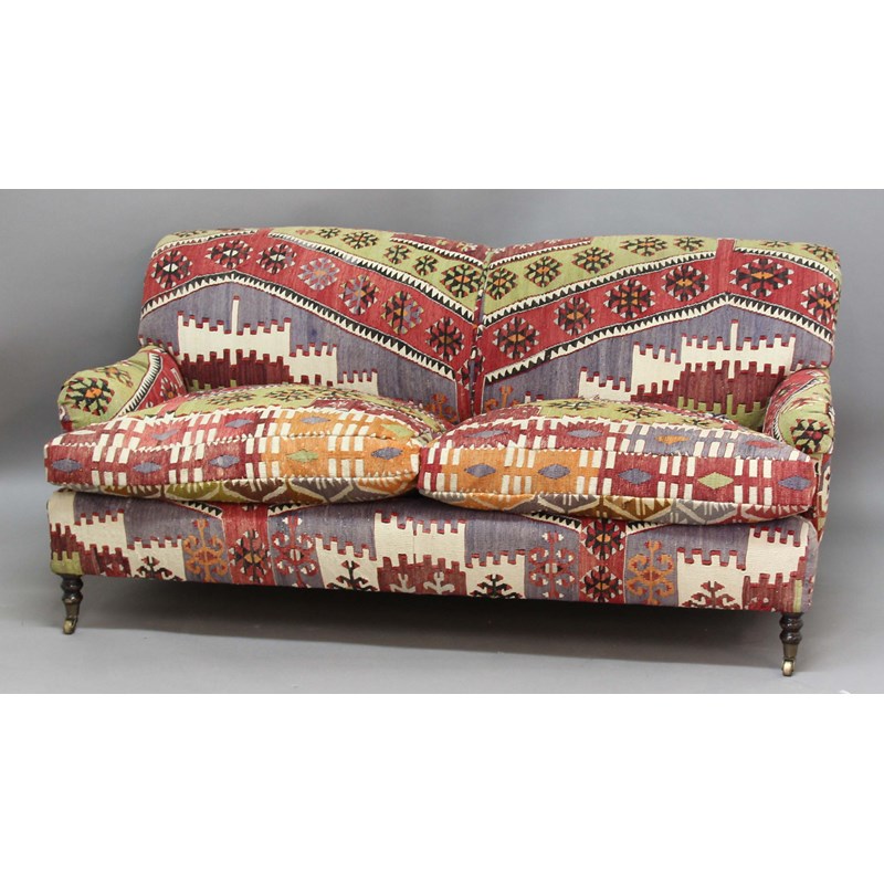 KELIM COVERED HOWARD STYLE SOFA, probably George Smith, with stuffed over back and loose seat cushions, width 190cm Provenance: purchased from Liberty of London, 1990