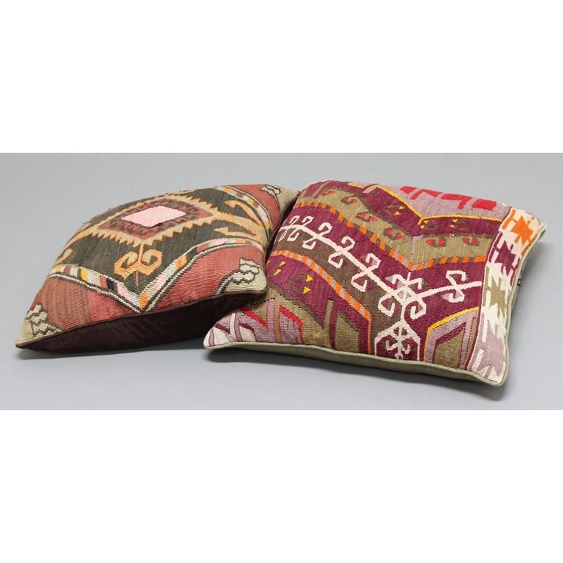 TWO KELIM CUSHIONS, the largest 60cm x 60cm Provenance: purchased from Liberty of London, 1990