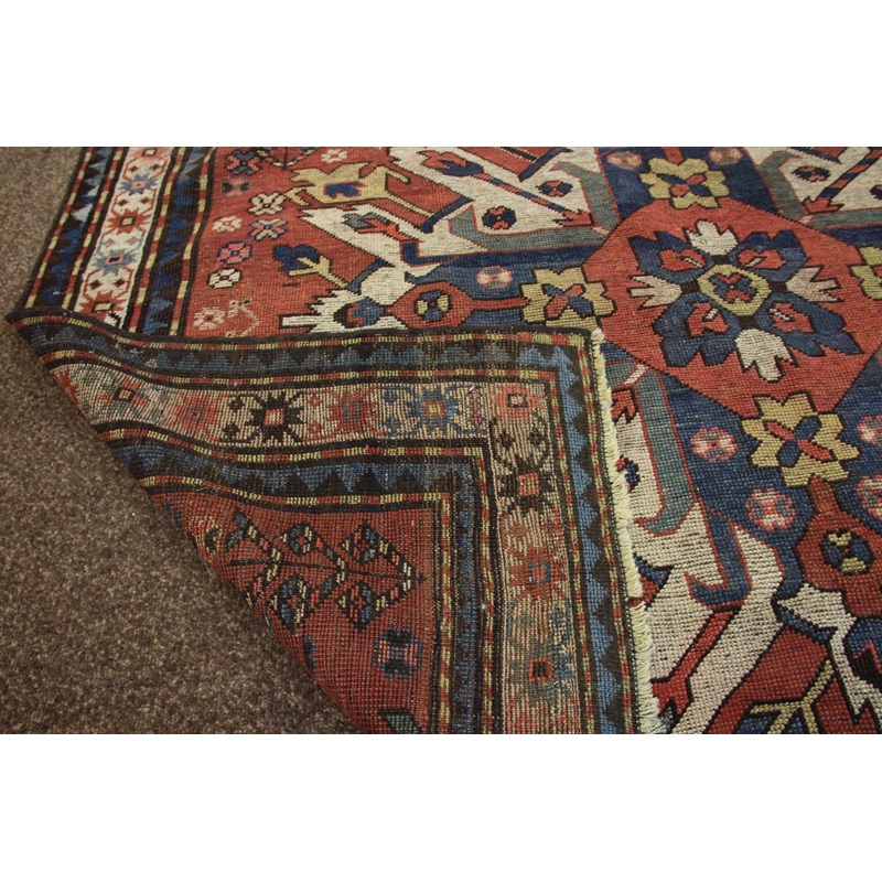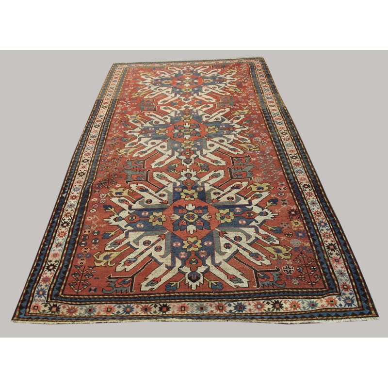 Karabagh, South Caucasus, late 19th Century,the madder field with three 'eagle' medallions surrounded by tribal devices and enclosed by ivory 'Harshang' borders flanked by guards stripes and barber poles, 280cm x 157cm approx
