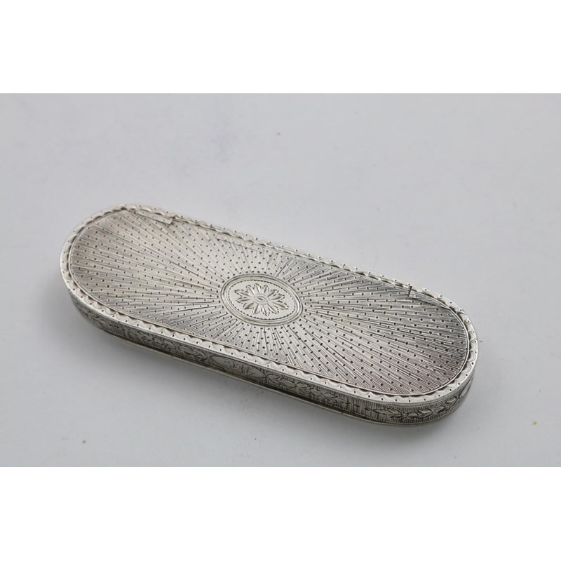 rectangular with rounded ends, a concealled hinge and an initialled cartouche on the front, maker's mark only, by T. Phipps & E. Robinson, London c.1785; 3.5" (9 cms) long; 1.7 oz