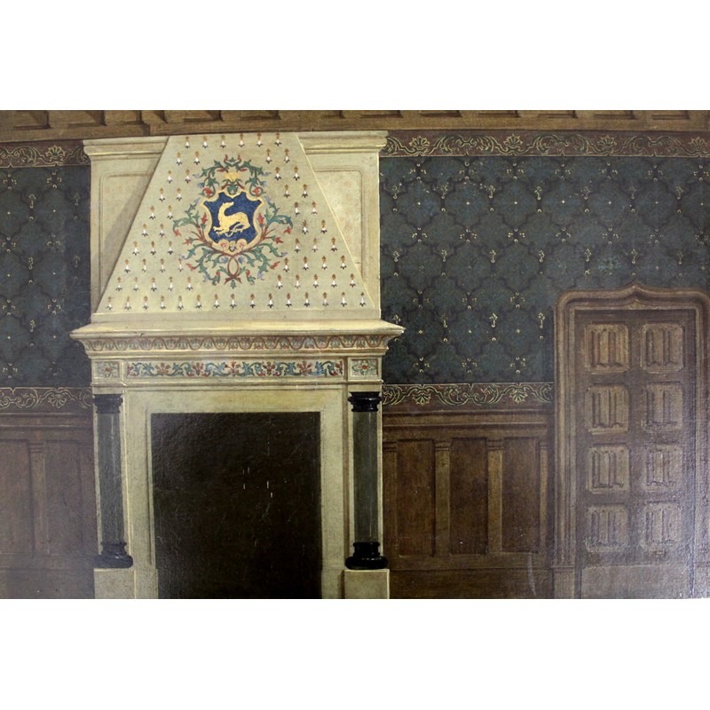 FRENCH SCHOOL, 19th CENTURY A GOTHIC INTERIOR OF A PANELLED ROOM, WITH A CANOPIED FIREPLACE Oil on canvas 39 x 55cm.
