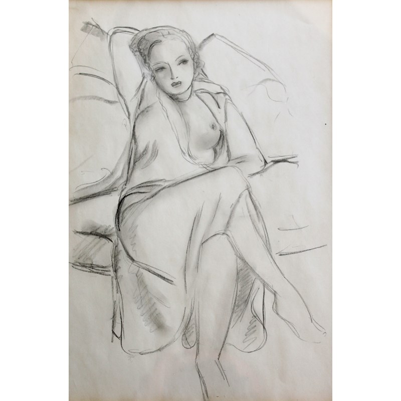 comprising `Girl Reclining on Pillows`, 1934, pencil, by John Buckland Wright, 31 x 21cm.; `Still Life`, watercolour, by Jean Marchand, 18.5 x 18.5cm.; `Eugenie` (nude study), 1989, conte crayon, by Bruce George, 31.5 x 29cm.; and `In the Chair`, 1985, crayon, by Henrietta Young, 38 x 28cm. (4)