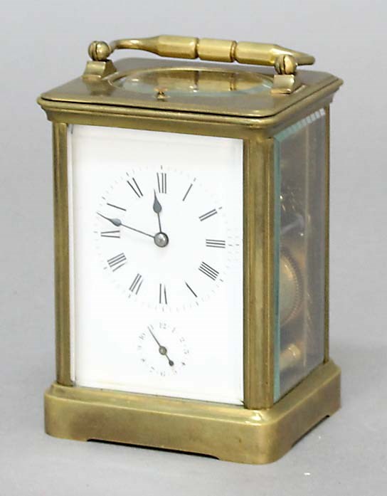 BRASS FOUR PANE CARRIAGE CLOCK,