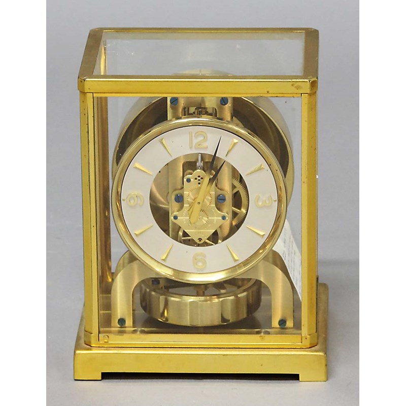 JAEGER LE COULTRE ATMOS CLOCK, serial number 89204, inscribed to the movement and drum, in a brass framed case, height 22cm