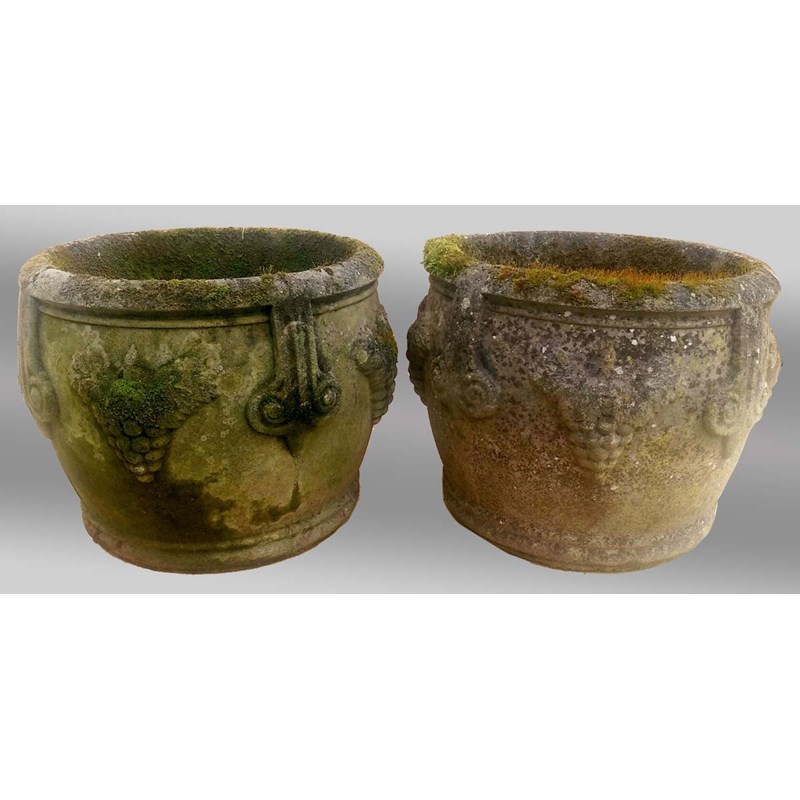 PAIR MOSSY PLANTERS with grape and scrolling decoration, height 33cm, width 43cm (2)