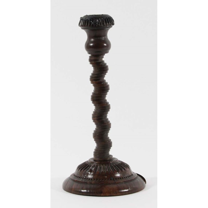 UNUSUAL 'STACKED COIN' CANDLESTICK probably 19th century, with spiral 'stacked coin' stem and domed detailed base, height 25cm