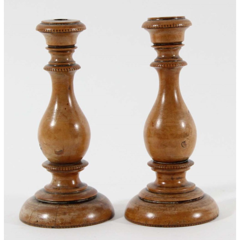PAIR BOXWOOD TAPER STICKS 18th century, the knopped baluster stems on turned domed bases, height 15cm (2)