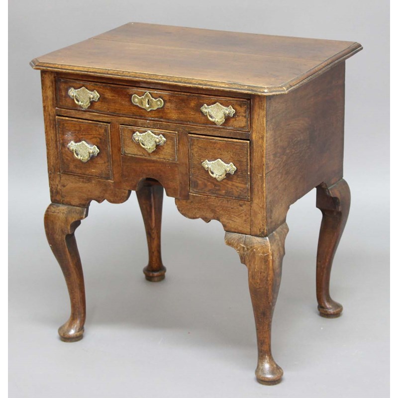 OAK LOWBOY, mid 18th century, the canted rectangular top above one long and three short drawers, on cabriole legs with pad feet, height 68cm, width 64cm, depth 47cm
