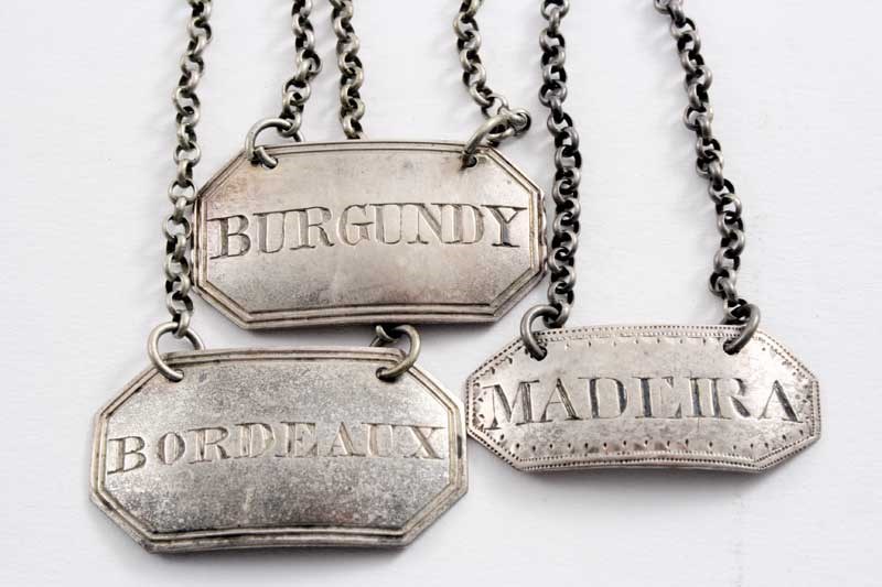 A "BURGUNDY" example with a reeded border, by William King, London 1828, a similar "BORDEAUX" example by the same maker, London 1844, & a "MADEIRA" with a bright-cut border, by Peter, Anne & William Bateman, London 1802; the latter 1.5" (3.8 cms) long; 0.7 oz (3)