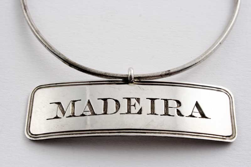 A GEORGE IV NECK RING WINE LABEL with a reeded border, incised "MADEIRA", by George Knight, London 1825; 2.25" (5.8 cms) long; 0.4 oz