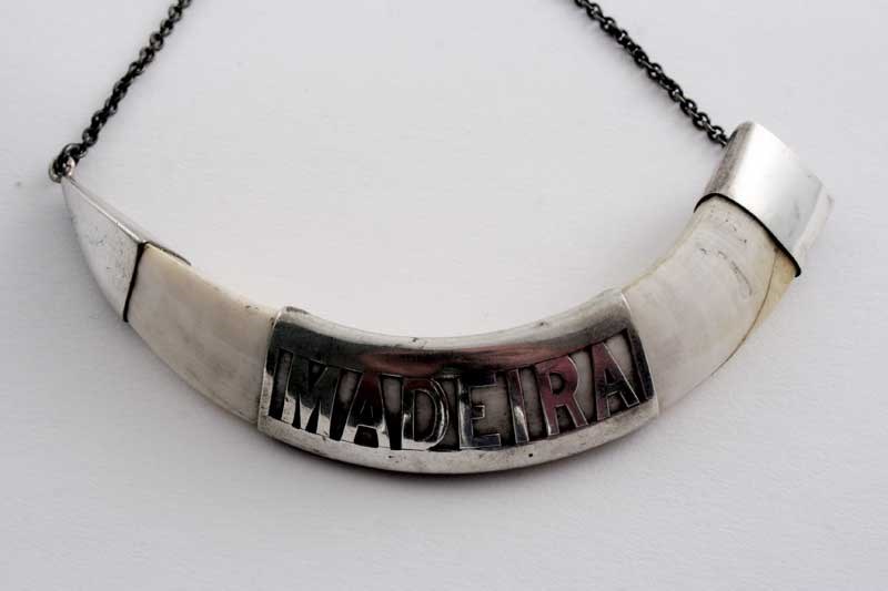 A 19TH CENTURY INDIAN MOUNTED BOAR TUSK WINE LABEL "MADEIRA" unmarked, c.1860; 4.9" (12 cms) long