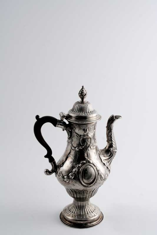 with embossed & fluted decoration & an engraved coat of arms on one side, maker's mark "I.D", London 1772; 12.7" (32.4 cms) high; 30.4 oz