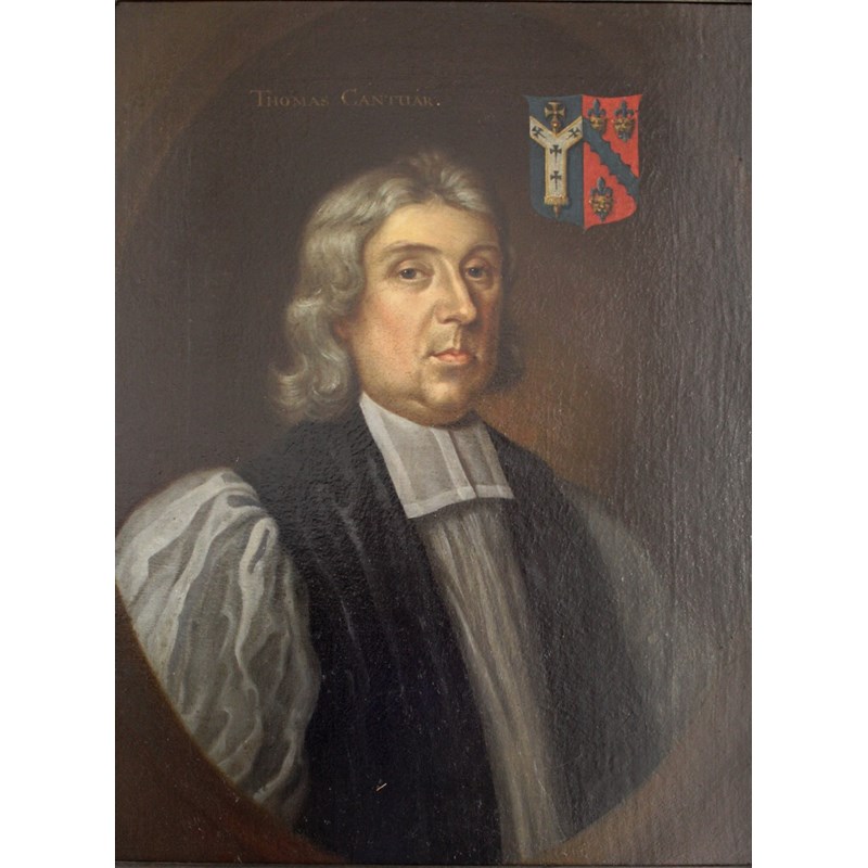 Quarter length, wearing clerical robes, with coat of arms and inscription THOMAS CANTUAR, oil on canvas, within a painted oval
