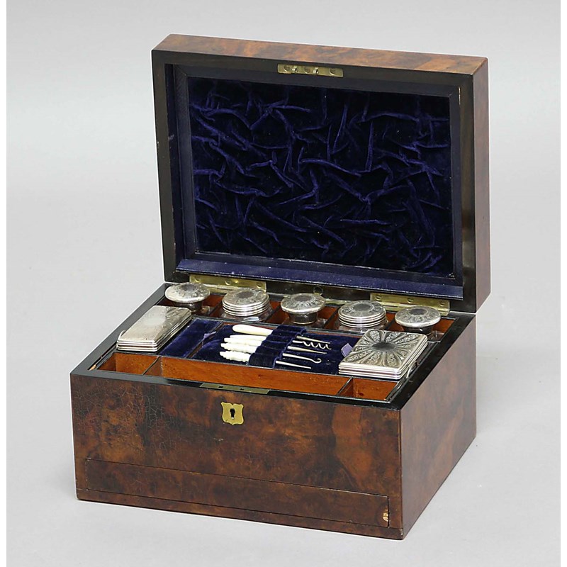 VICTORIAN BURR WALNUT DRESSING BOX,