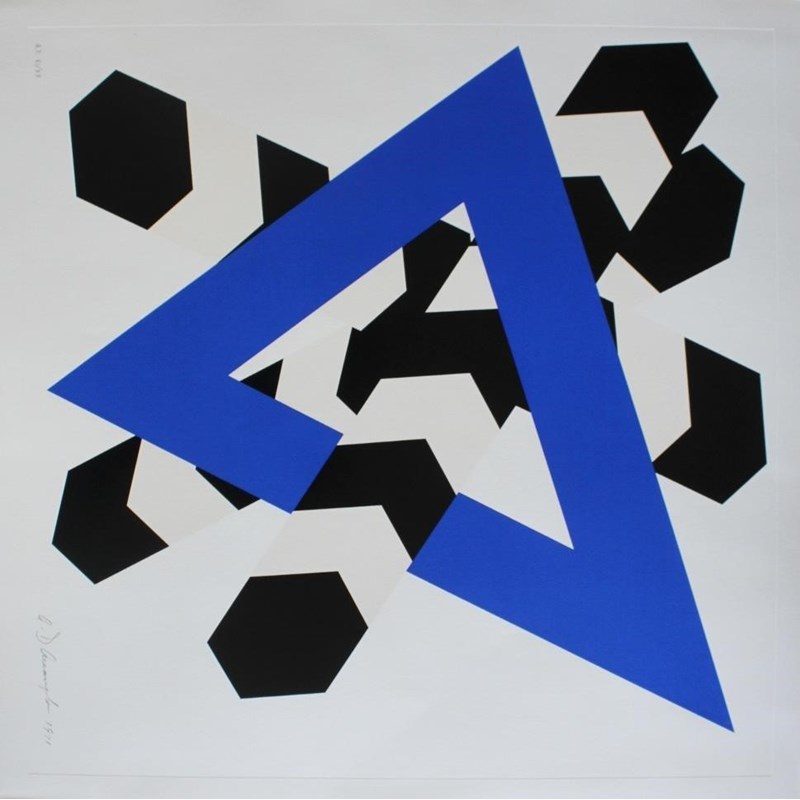 to comprise works by Allan D'Arcangelo (`Constellation III`, screenprint, 1971, signed); Gordon House (`Green A`, screenprint, proof, 1972, signed); Ian McKeever (`Staffa I-III`, 1988, each signed); and a lithograph of a menu from San Lorenzo Fuoriporta, with facsimile signatures by Blake, Boshier, Hamilton, Hockney, Hodgkin, Jones, Kitaj, Tilson and many others (folio)