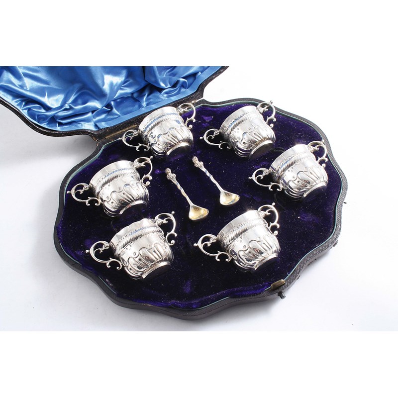 A LATE VICTORIAN CASED SET OF SIX SALTS