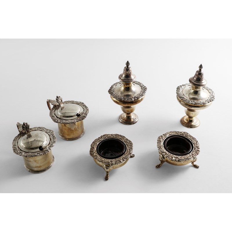AN EARLY 20TH CENTURY SIX-PIECE CONDIMENT SET