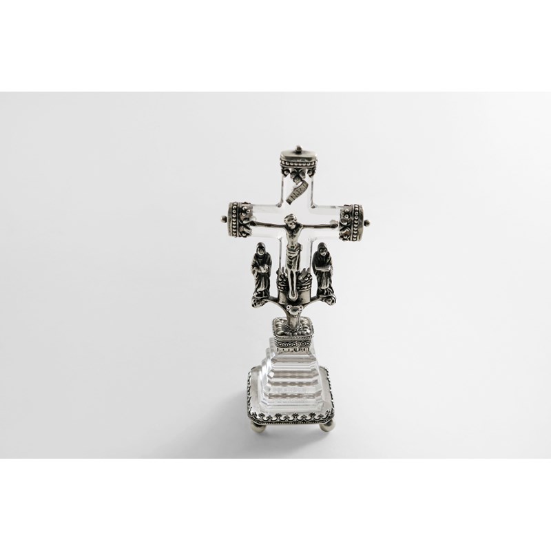 A SMALL CONTINENTAL MOUNTED ROCK-CRYSTAL CRUCIFIX