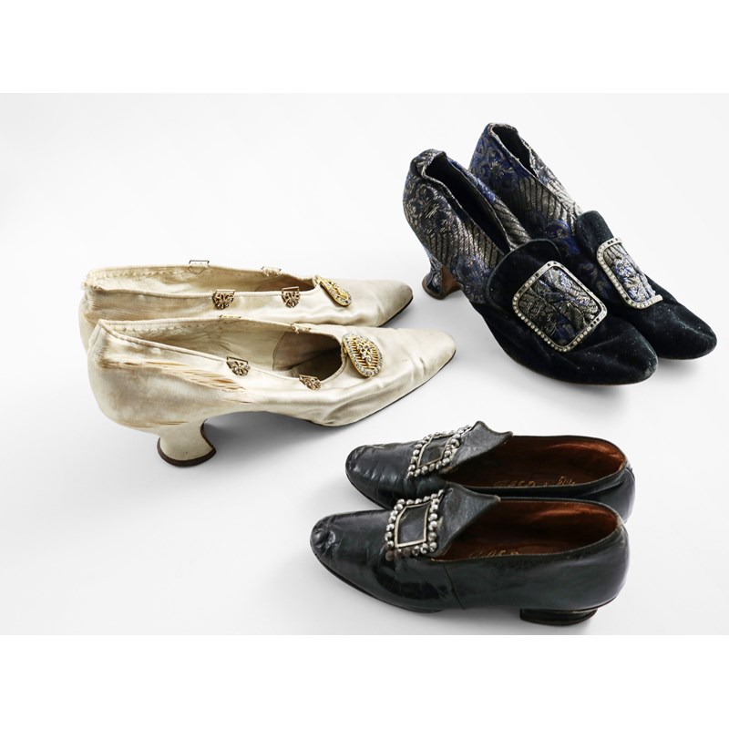 THREE PAIRS OF VINTAGE SHOES DEMONSTRATING THE USE OF THE BUCKLE:-
