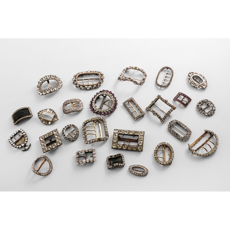 TWENTY FIVE VARIOUS PASTE-SET BUCKLES