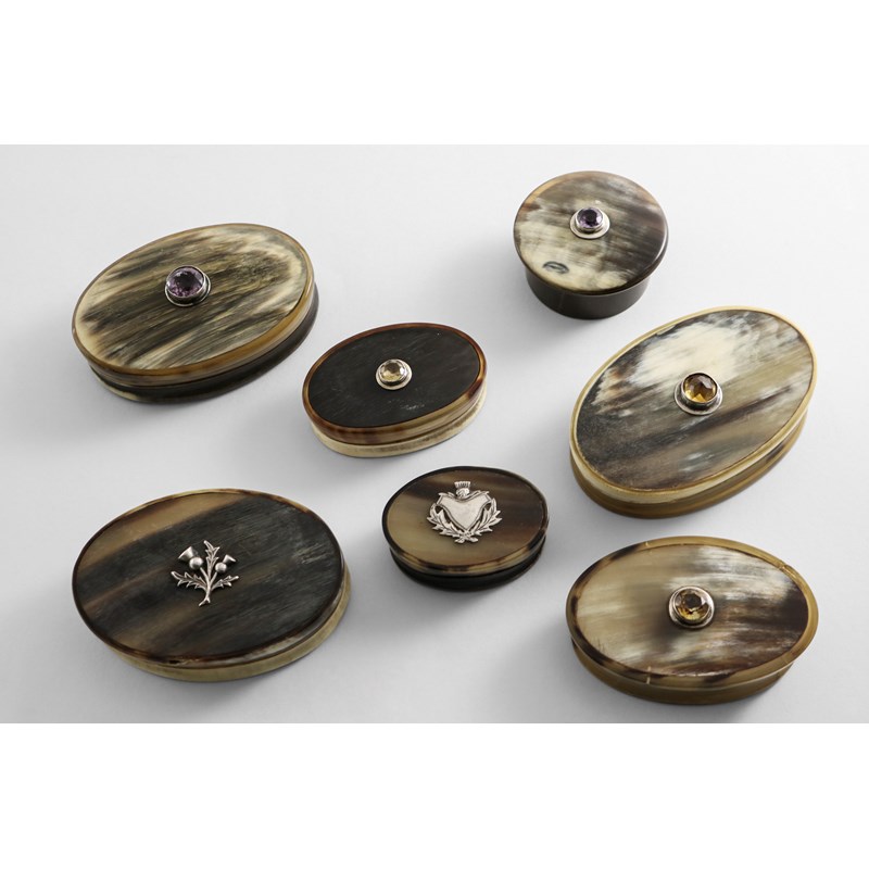 THREE LATE VICTORIAN / EDWARDIAN ABERDEEEN MOUNTED HORN SNUFF BOXES
