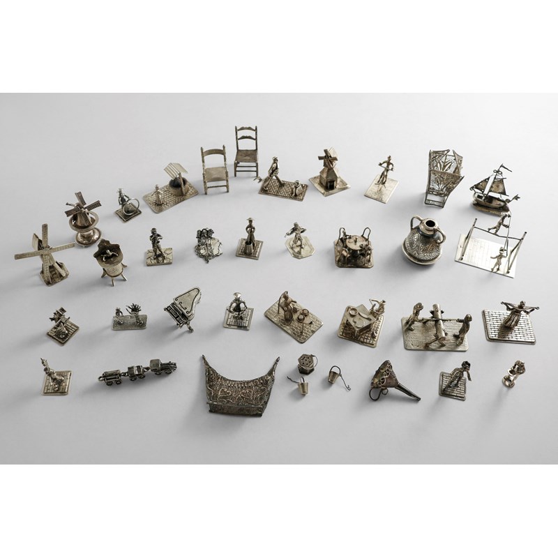 mainly Dutch (to include figure groups, chairs, two windmills, sail boat etc.) and six other miniature items, most pieces 20th century;' the tight rope walker 2.25" (5.5 cms) long; 16.5 oz