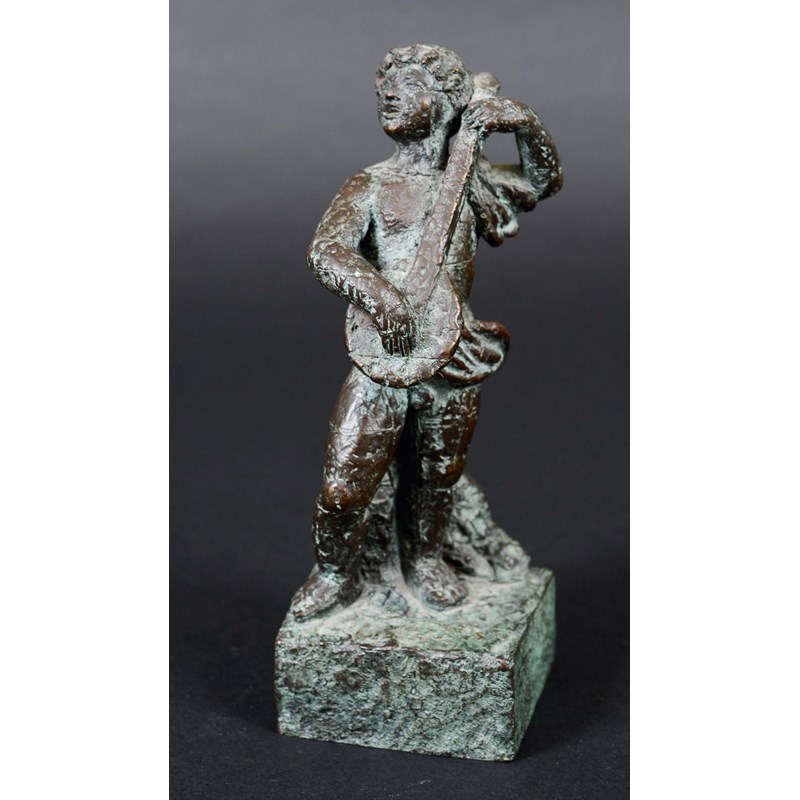 a bronze figure of a Boy Minstrel, made in the classical style. Signed, PW Monogram, Morris Singers Foundry, 2/9. 8 1/4ins (21cms) high