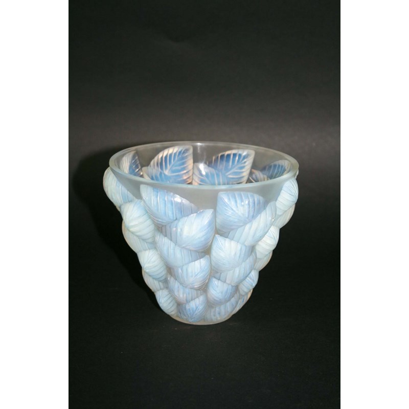 LALIQUE MOSSIAC VASE the opalescent vase with leaf design. Etched mark, R Lalique, France. 5ins (13cms) high