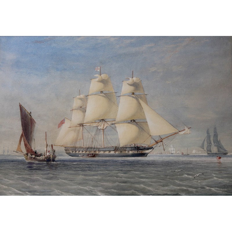 THOMAS SEWELL ROBINS (1814-1880) A BLACKWALL FRIGATE GETTING UNDERWAY IN THE DOWNS Signed and dated 1851, watercolour over pencil heightened with white and scratching out 30 x 44cm.