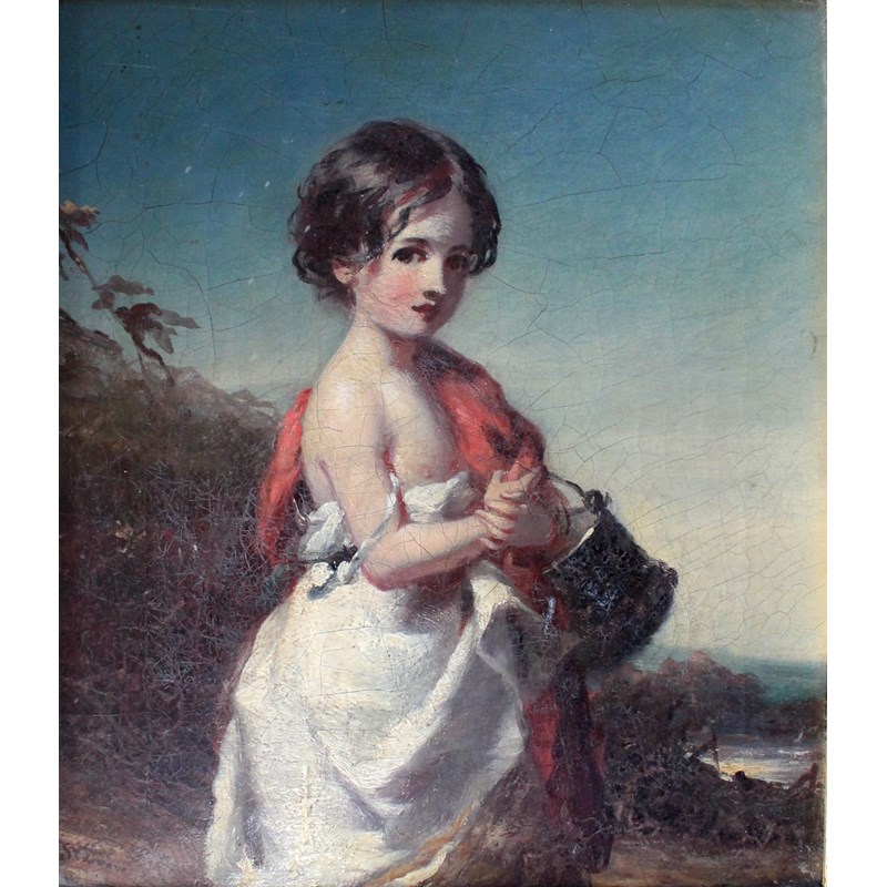 J** P** DREW (Fl.1835-1861) A LITTLE COUNTRY GIRL Signed, oil on canvas 34 x 29cm.