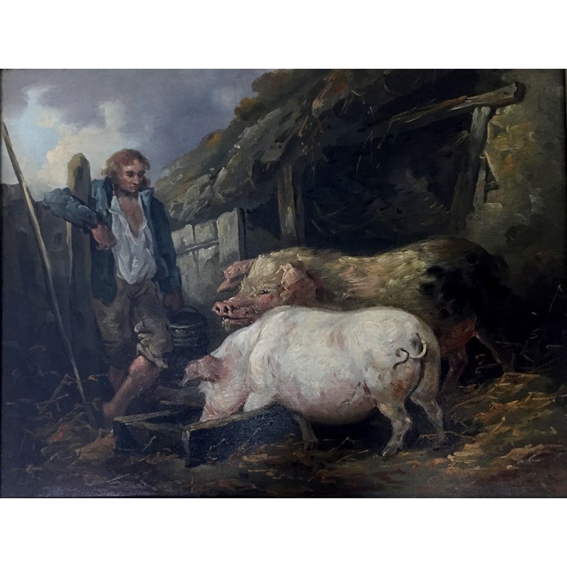 ATTRIBUTED TO GEORGE MORLAND (1763-1804) THE PIG HAND Oil on canvas 30.5 x 39cm.