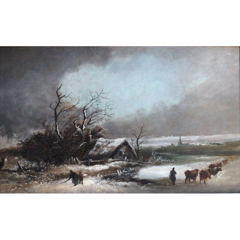 ATTRIBUTED TO WILLIAM STONE (1840-1913) WINTER DROVERS Oil on canvas 40 x 65cm.