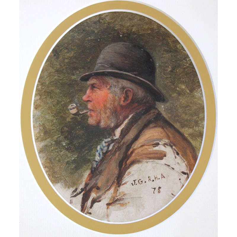 Signed with initials and dated J.G. R.H.A/ 78, bears title on backpaper, oil on board, vignette sketch