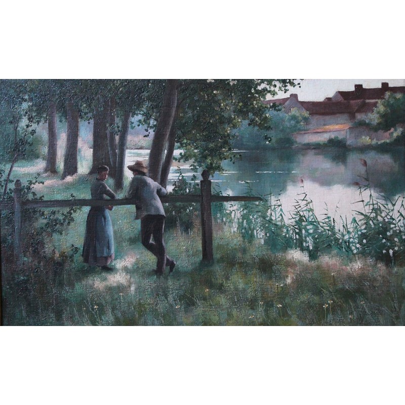 FOLLOWER OF BENJAMIN D. SIGMUND (Fl.1880-1904) THE TWILIGHT TRYST Oil on canvas 34.5 x 54.5cm.