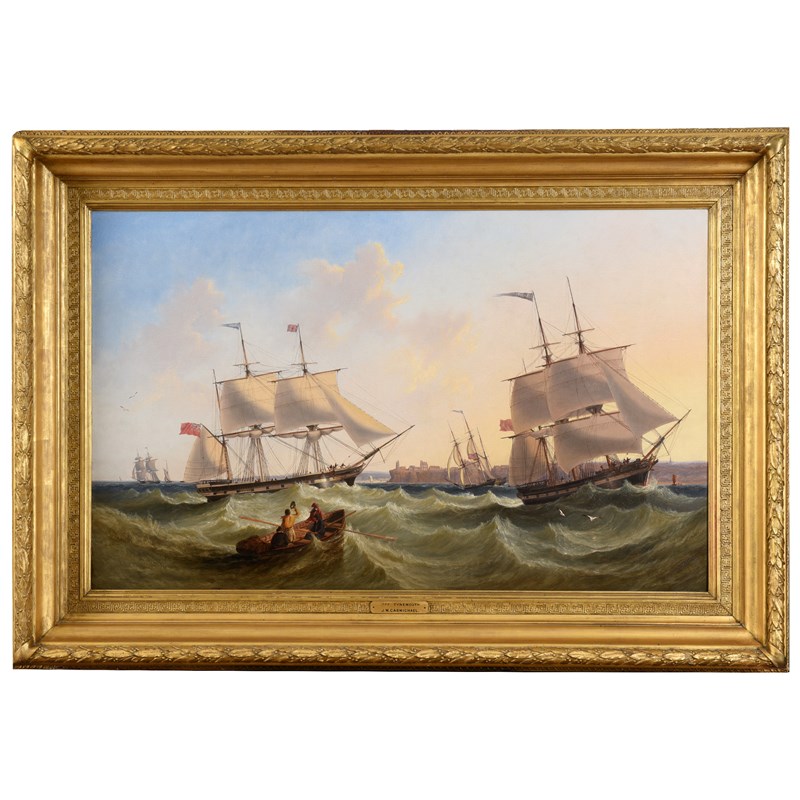 JOHN WILSON CARMICHAEL (1800-1868) OFF TYNEMOUTH Signed, oil on canvas 64.5 x 105cm.