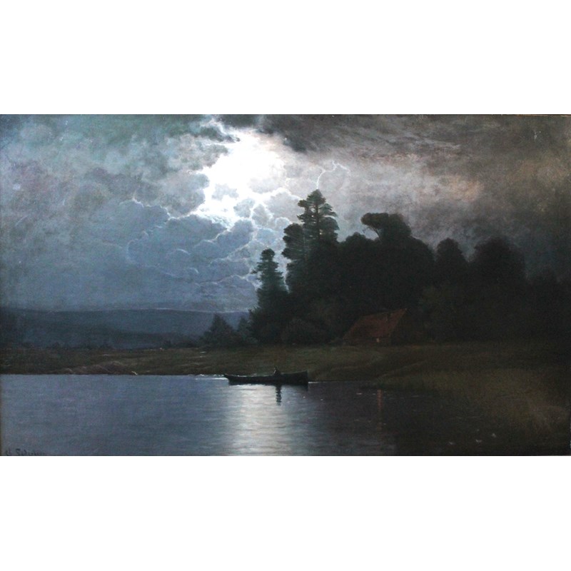CHARLES SODERBAUM (Fl.c.1914) MOONRISE OVER THE LAKE Signed and indistinctly dated (1914?), oil on canvas 75 x 126cm.