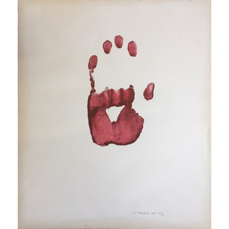 ‡LOUIS LE BROCQUY, HRHA (1916-2012) RED HANDPRINT Lithograph, 1971, signed, numbered 60/70 and dated 1971, clip frame Sheet 40 x 34cm.; image 19.5 x 11.5cm approx.