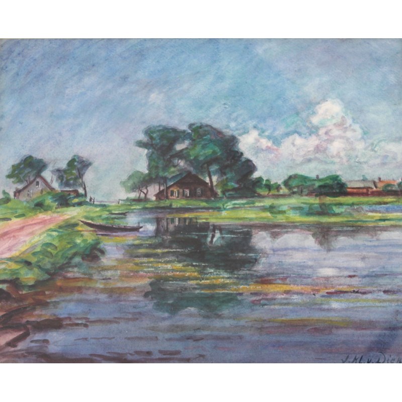‡JULIAN KLEIN VON DIEPOLD (1868-1947) LANDSCHAFT BEI RIEPE, 1944 Signed, watercolour 37.5 x 46.5cm. Exhibited: Oldenburg, Landesmuseum, 1991; Emden, Ostfriesisches Landesmuseum, 1992 (ref 75-15)
