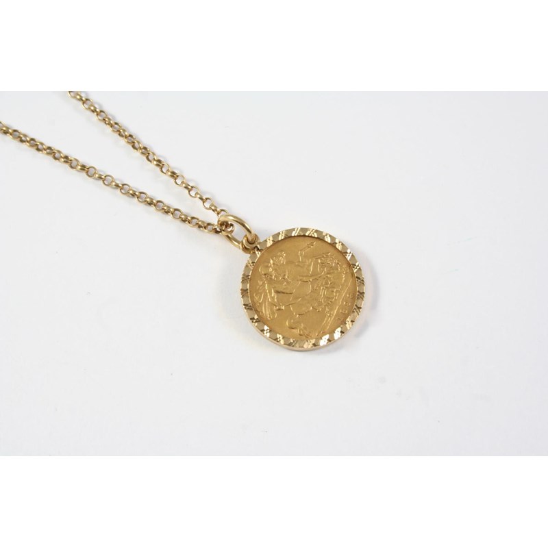 A GOLD HALF SOVEREIGN 1898, in a 9ct gold pendant mount and on a 9ct gold circular link chain, total weight 8.8 grams