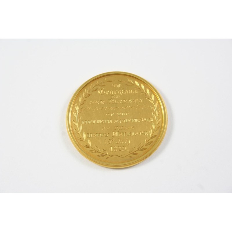 inscribed to one side William and Ann Hobson married 15 July 1779, to the other side To Georgina by her parents in commemoration of the fiftieth anniversay of the happy marriage 15 July 1829, 40.5 grams