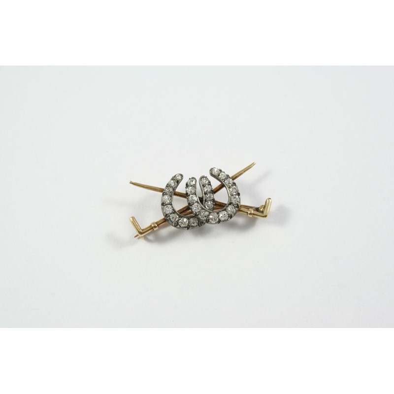 A VICTORIAN DIAMOND DOUBLE HORSESHOE BROOCH mounted with old-cut diamonds, in silver and backed in gold, 3.5cm wide