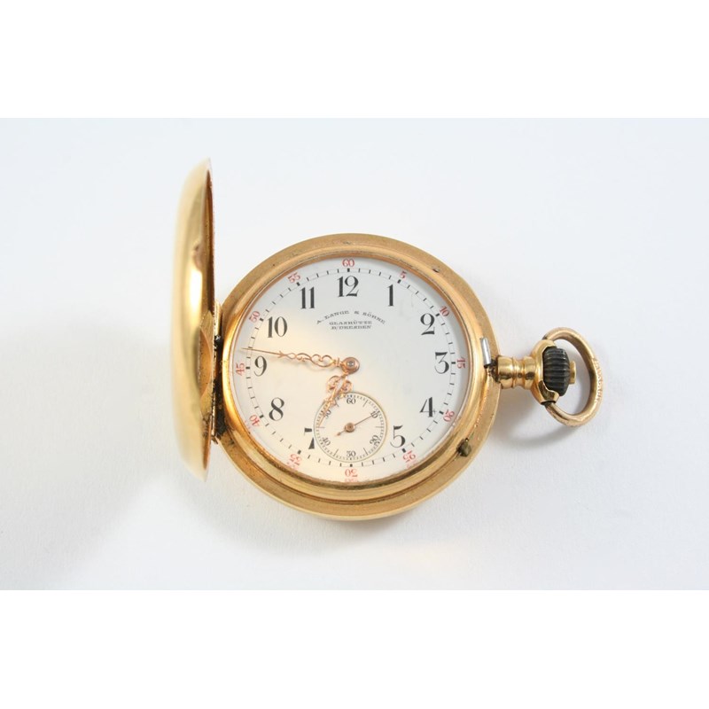 AN 18CT GOLD FULL HUNTING CASED POCKET WATCH BY A. LANGE & SOHNE, DRESDEN