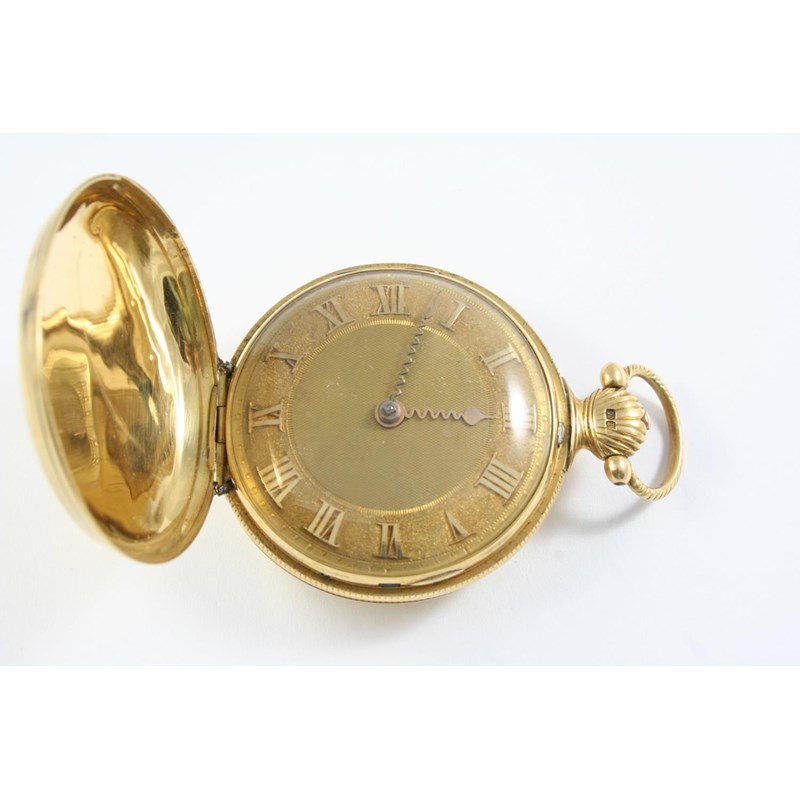 AN 18CT GOLD FULL HUNTING CASED POCKET WATCH the gold coloured dial with Roman numerals, the movement signed James Gorham, Kennington, watch maker to the Royal Family, 45mm dia., 103 grams