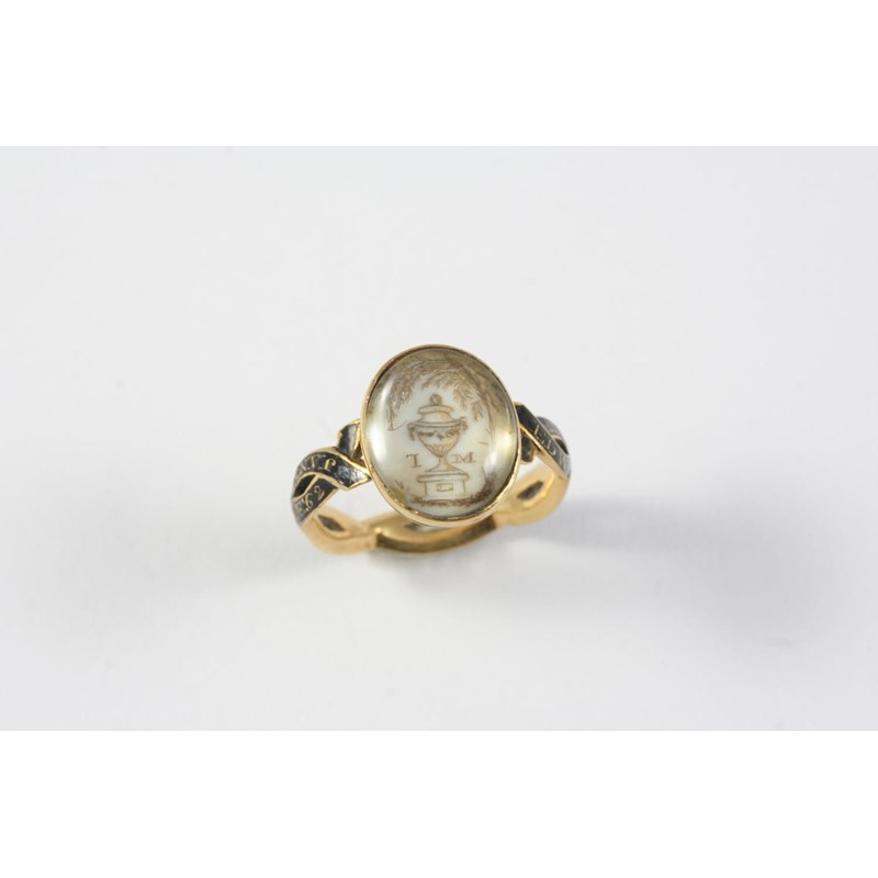 A GEORGE III SEPIA AND BLACK ENAMEL MOURNING RING