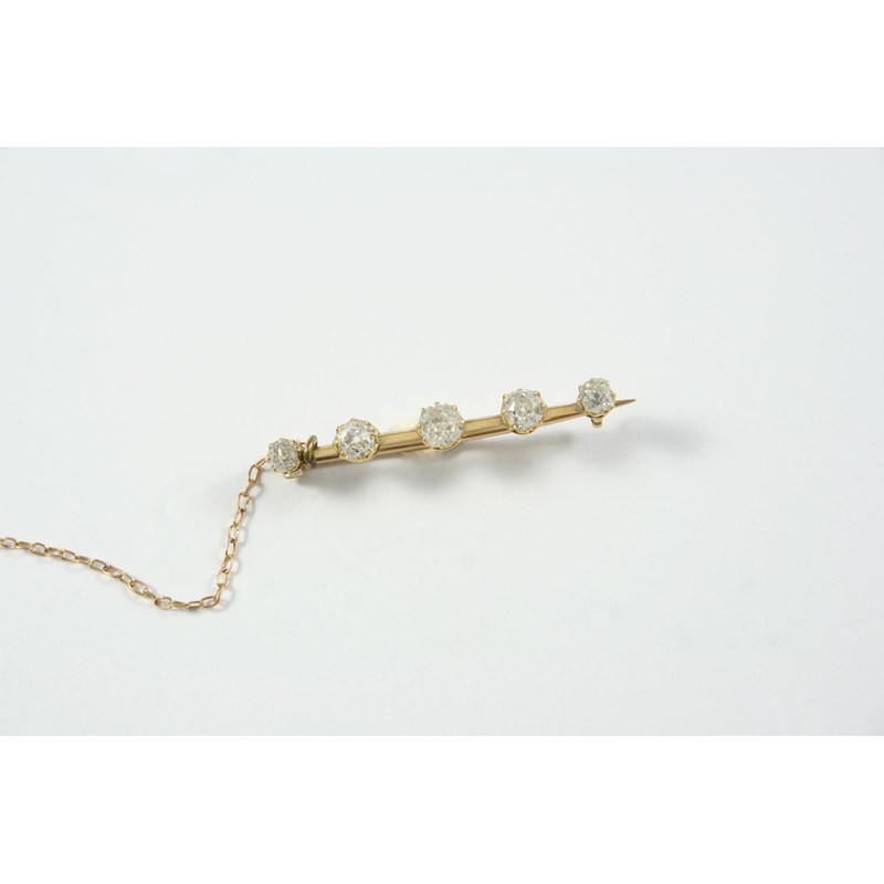 A DIAMOND BROOCH mounted with five graduated old cushion-shaped diamonds, in yellow gold, 3.5cm long