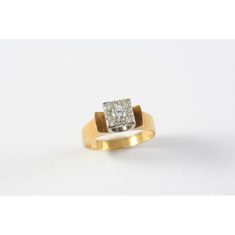 A DIAMOND CLUSTER RING the circular-cut diamond is set within a surround of single-cut diamonds, in 18ct gold. Size N