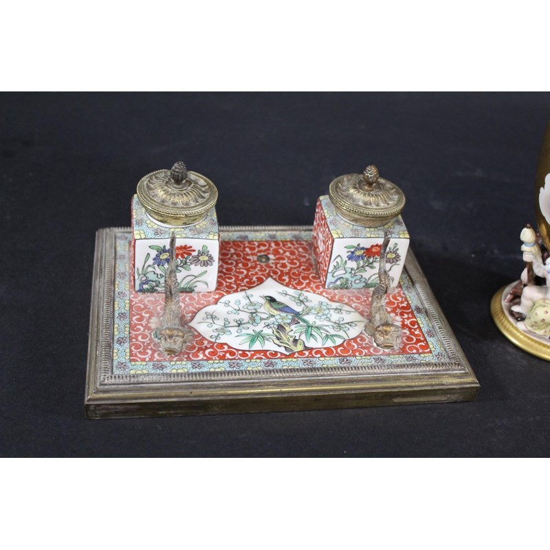 GILT METAL & PORCELAIN INKSTAND