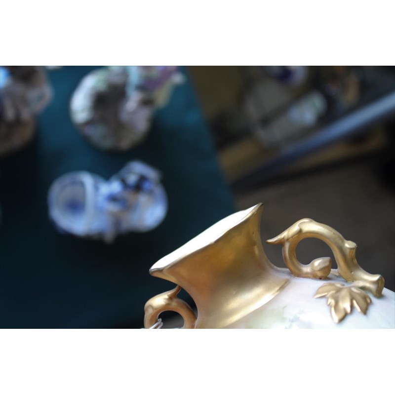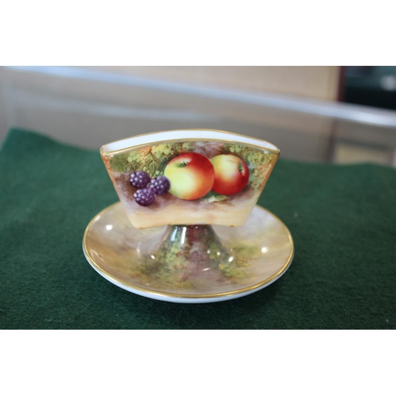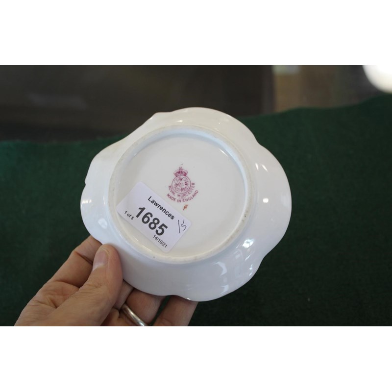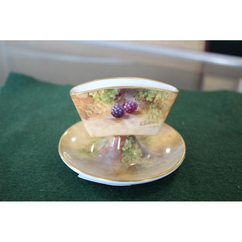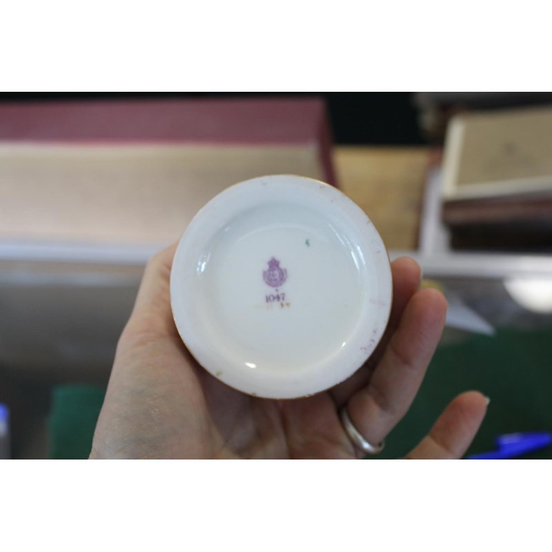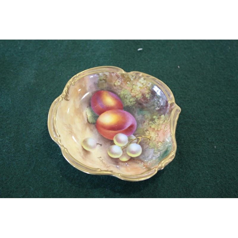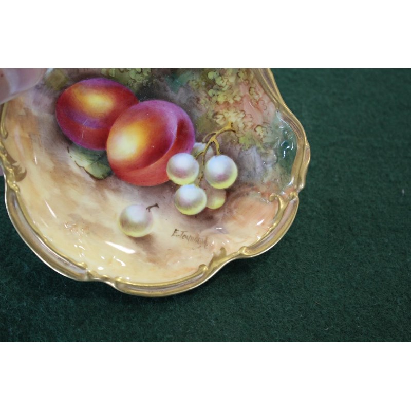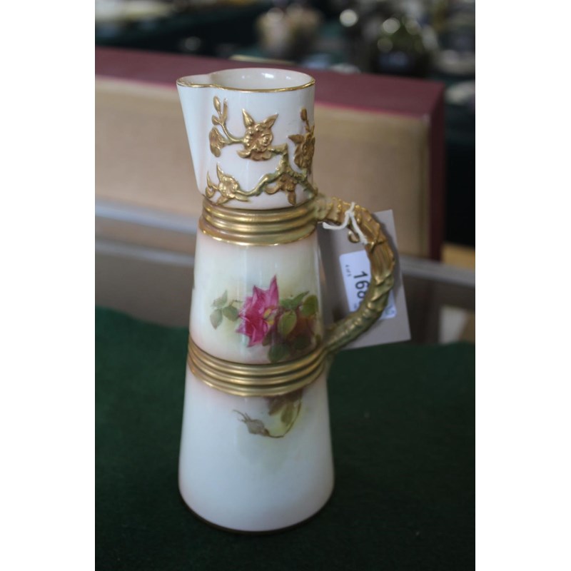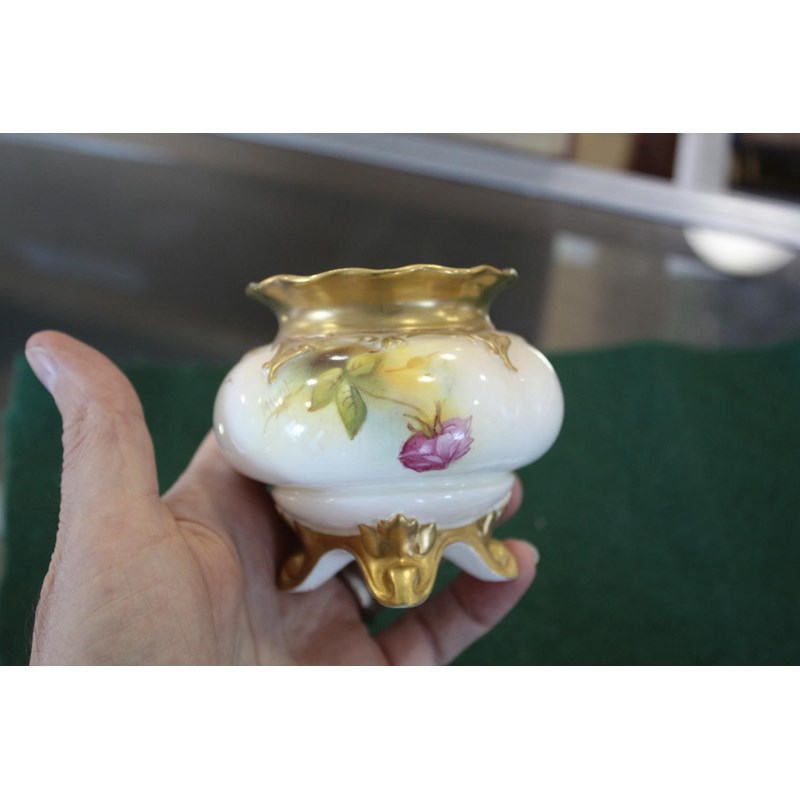 five various items including a two handled globular vase painted with roses signed E M Fildes (13cms high), and a jug of tapering form by the same artist (20.5cms high). Also with a small pot pourri signed M Hunt (11cms high), and a small dish and menu holder signed by E Townsend. (5)