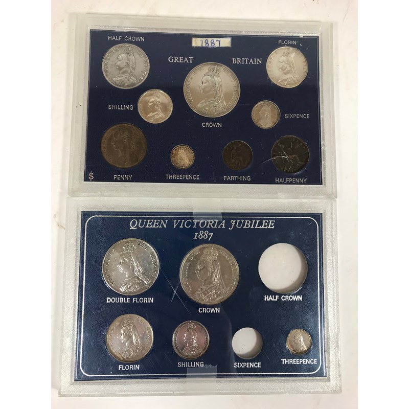 VICTORIAN JUBILEE COINAGE 1887. 1887 coinage comprising Crown (2), Double florin, halfcrown florin (2), shilling (2), sixpence, threepence (2), penny, halfpenny and farthing. 14 coins.